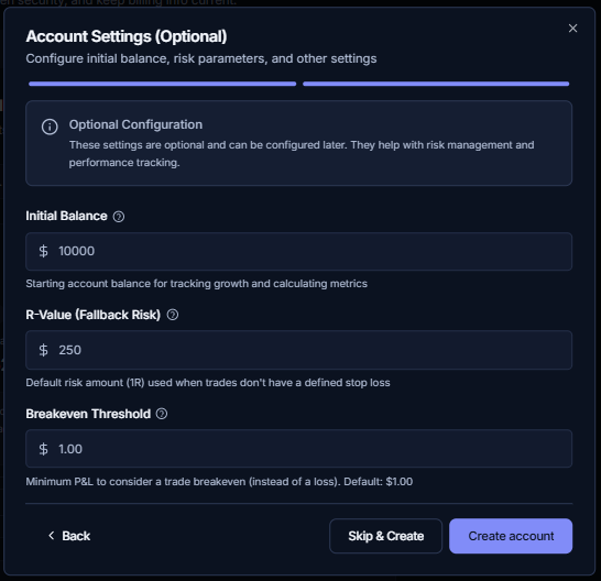 Learn how to set up trading accounts in TradeRonin to start tracking your trades.